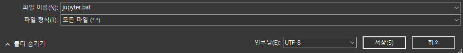 5. 파일이름.bat으로 지정 후 [저장]을 누릅니다.