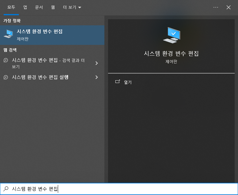 2-1. 윈도우키를 눌러서 [시스템 환경 변수 편집]을 입력 후 "클릭" 합니다.