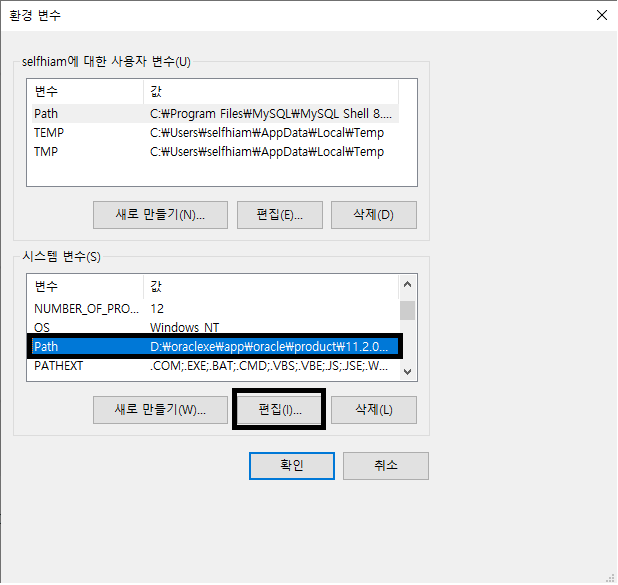 2-3. [환경 변수]창에서 (시스템 변수(S))속 "Path"를 찾아 클릭 후 [편집]을 누릅니다.