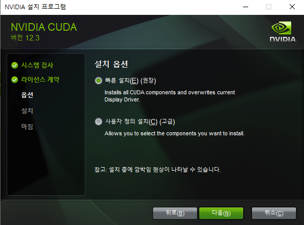 3-2. [빠른 설치] 선택 후 [다음] 클릭