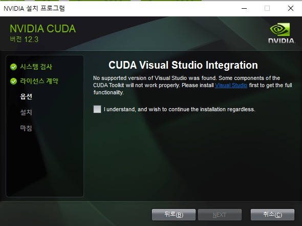 그래서 11.7 이전버전으로 설치를 하니 이상없이 설치가 완료되었습니다.