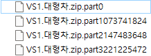 이렇게 보면 part로 분활된 데이터가 하나의 "대형차.zip"으로 합쳐질걸 볼 수 있습니다.