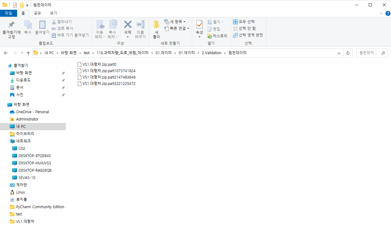 해당 데이터는 분활 압축된 데이터이므로 합쳐줘야 합니다.