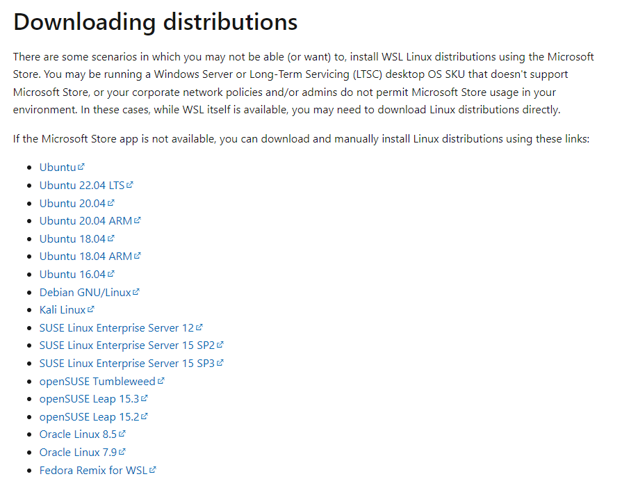 Step by step instructions to manually install WSL on older versions of Windows, rather than using the wsl install command.