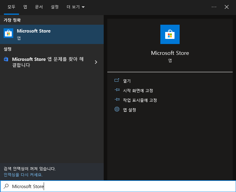 [윈도우]키를 누른 후 [Microsoft Store]를 검색 후 실행합니다.