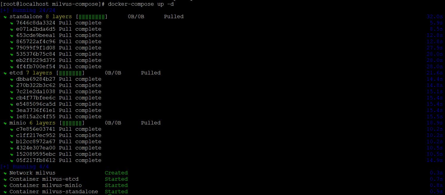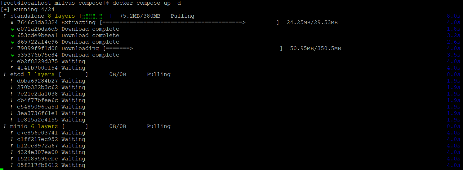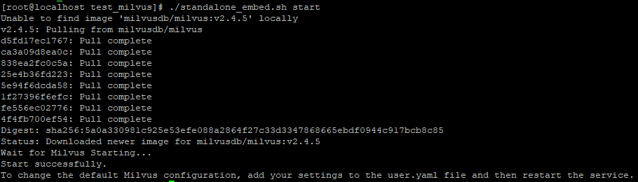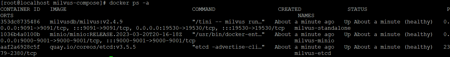 milvus-standalone은 Milvus의 단일 노드 버전을 실행합니다.
