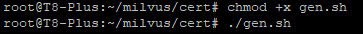 다음으로 스크립트에 실행 권한을 부여하고 실행하여 인증서를 생성합니다.