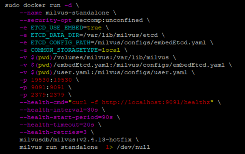 -e MILVUS_URL: milvus 주소를 넣으면 됩니다.