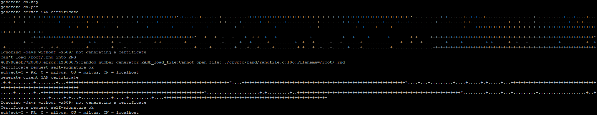 이제 TLS 암호화 및 인증 기능이 적용된 Milvus가 정상적으로 실행됩니다.