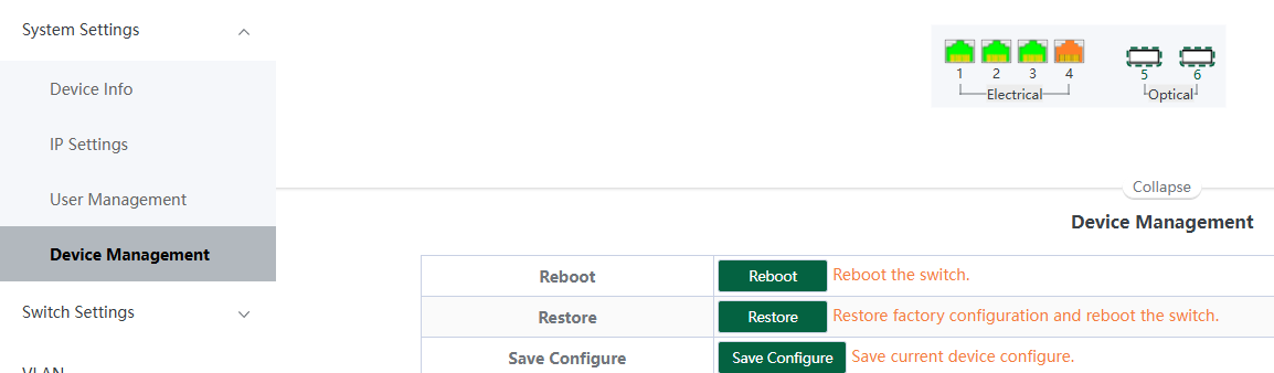 이후 아까처럼 "System Settings" -> "Device Management"에서 "Save Configure"를 눌러 설정을 저장하세요