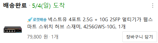 안녕하세요 외부망에서는 정작 100M 요금제를 사용을 하지만 내부만큼은 파일 전송 속도를 높이기 위해 2.5G를 구성해봤습니다.