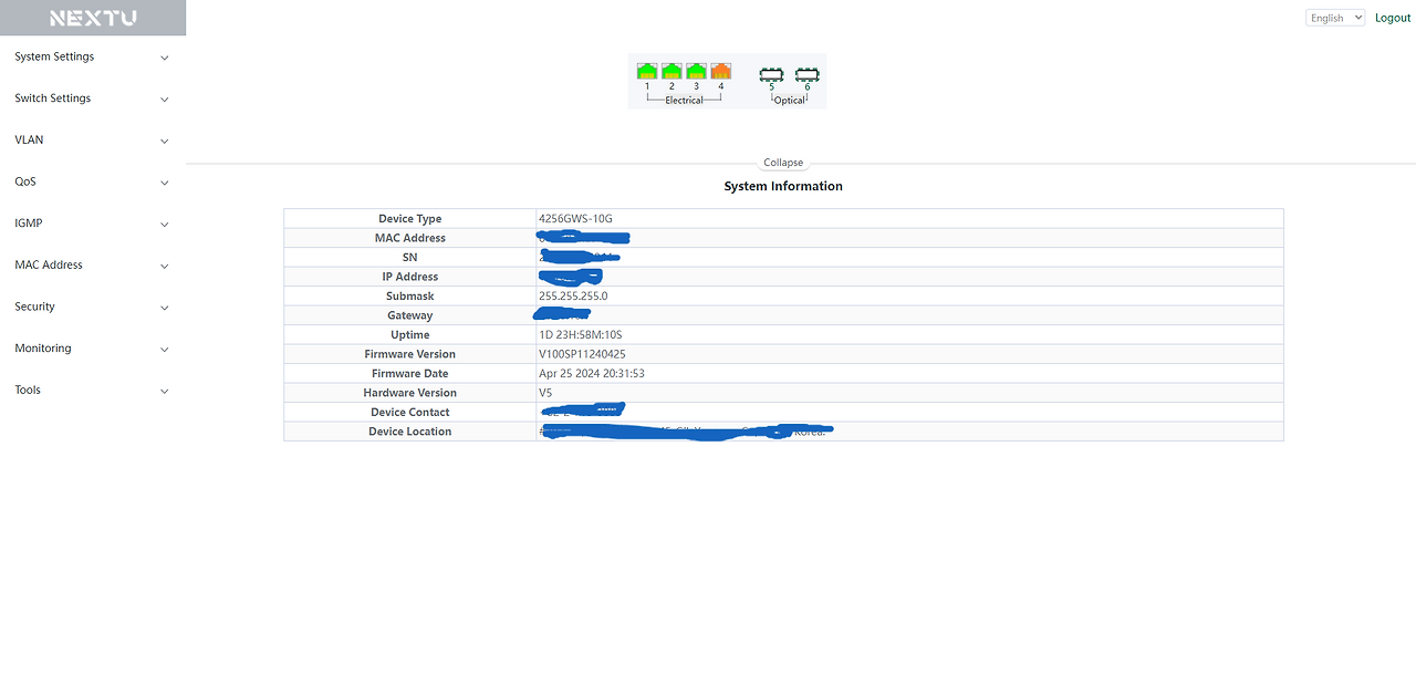아래의 넥스트유 4포트 2.5G의 관리 페이지에서 LACP까지 구성하기 위해 구매를 하였습니다.