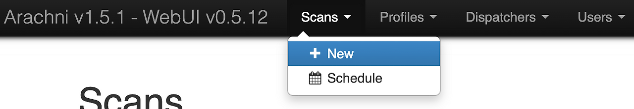 이후 상단 [Scans] -> [New]를 눌러줍니다.