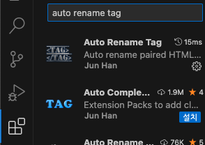 위처럼 확장칸을 눌러서 auto rename tag를 입력해서 첫번재꺼를 다운로드 한다.