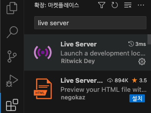 ㄴ확장칸을 눌러서 live server를 입력 후 첫번째꺼를 다운로드 한다.