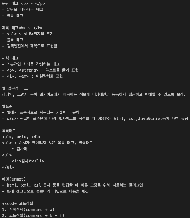 - 대부분의 태그는 시작태그와 종료태그로 구성되어 있음