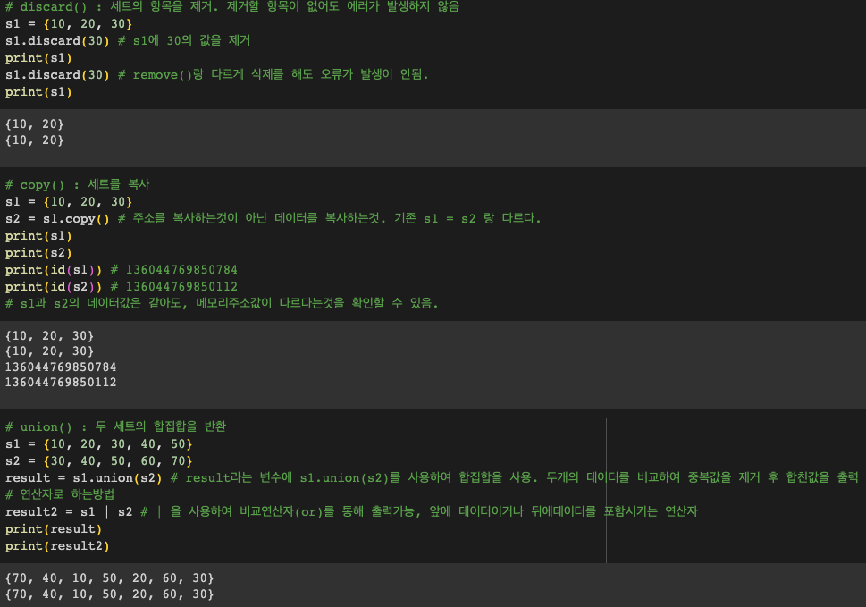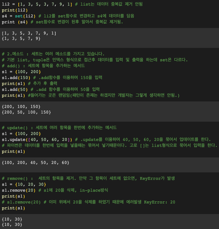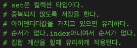 세트(set)는 중복되지 않는 항목들의 컬렉션입니다.