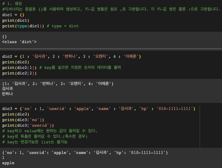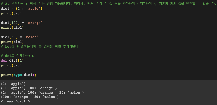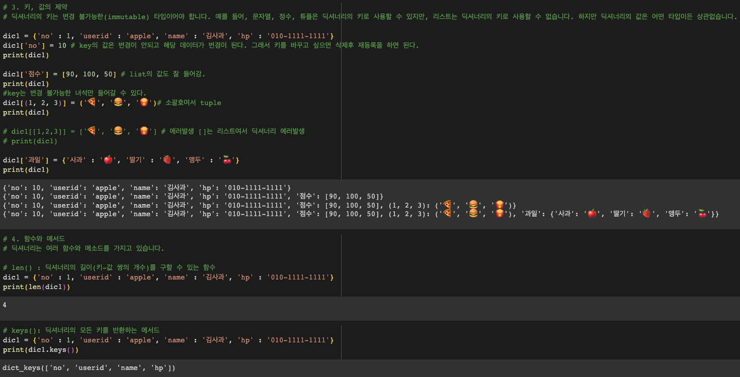 파이썬의 딕셔너리는 키-값 쌍을 저장하는 변경 가능한(mutable) 컬렉션입니다.